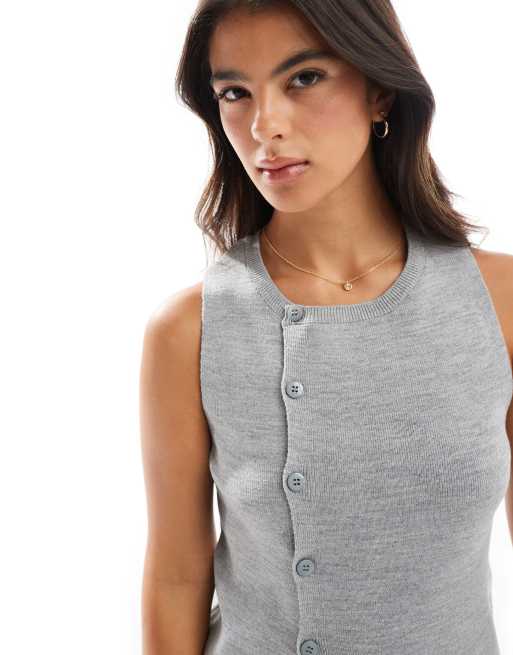 ASOS DESIGN – Grå, strukturstickad kostymväst med slits och asymmetrisk knäppning framtill