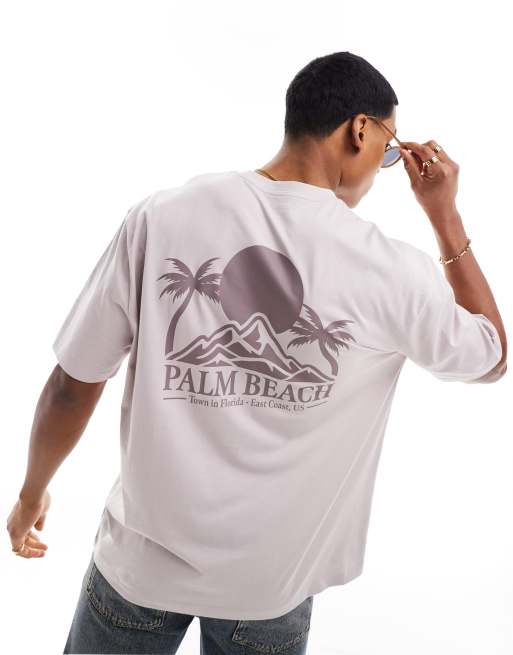 ASOS DESIGN – Grå t-shirt i oversize med Beach-tryck baktill