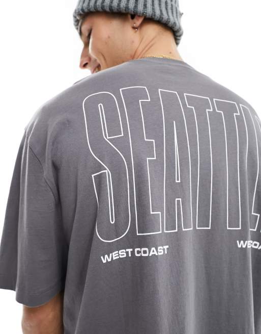 ASOS DESIGN – Grå t-shirt i oversize med stadstryck baktill