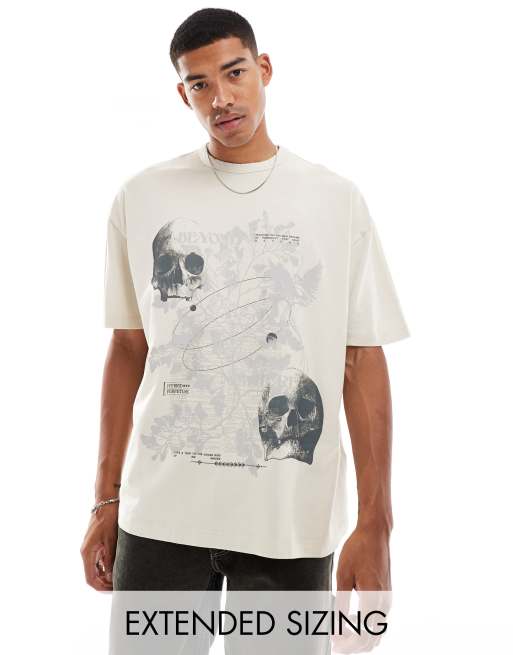 ASOS DESIGN – Grå, tvättad t-shirt i oversize med grungetryck framtill