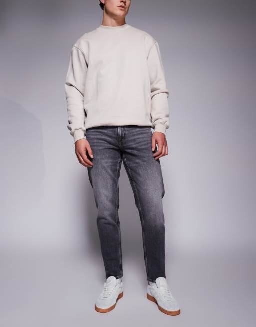 ASOS DESIGN – Grå, tvättade, avsmalnande jeans med stretch