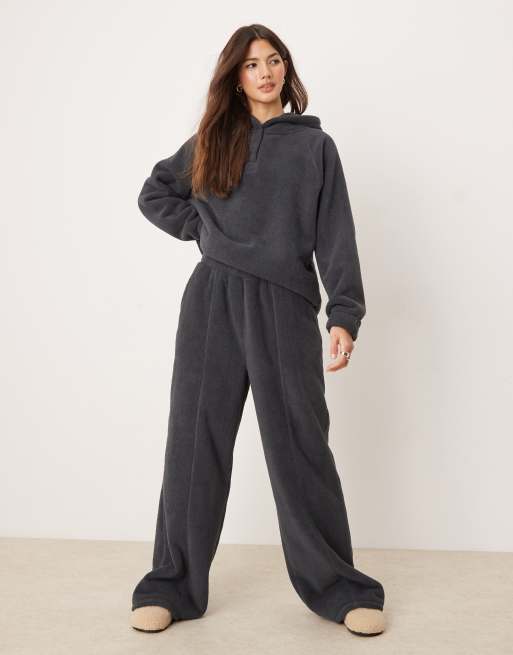 ASOS DESIGN – Grå, vida mysbyxor i mikrofleece