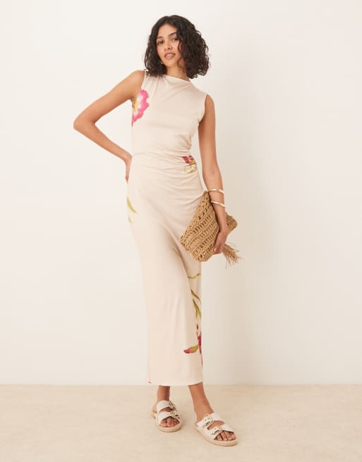 ASOS DESIGN – Gräddvit, blommig och ärmlös midiklänning