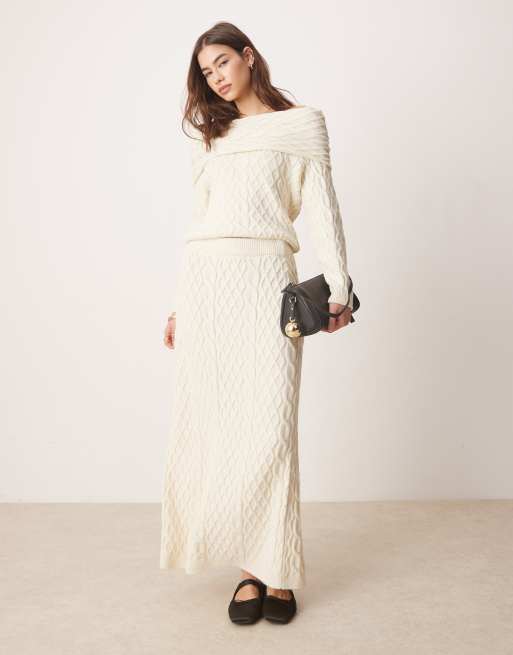 ASOS DESIGN – Gräddvit, flätstickad maxikjol, del av set
