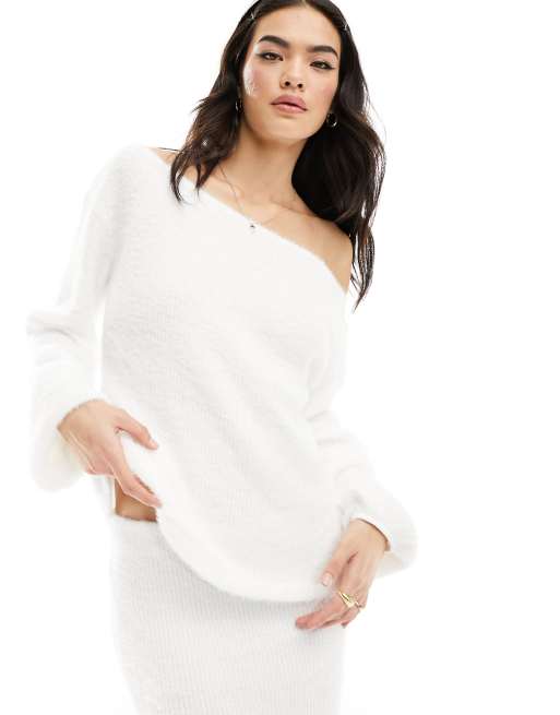 ASOS DESIGN – Gräddvit fluffig tröja med bara axlar, del av set