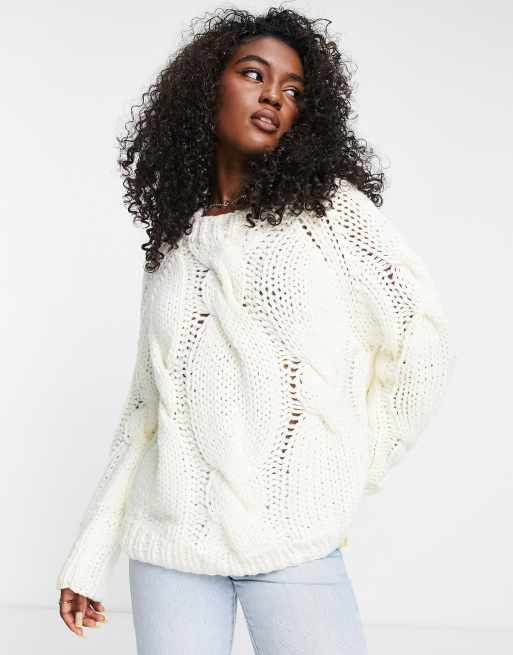 ASOS DESIGN – Gräddvit handstickad tröja med flätor