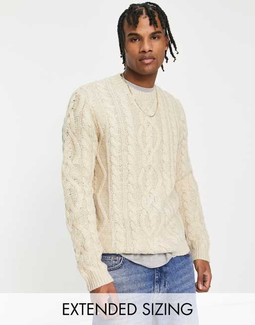 ASOS DESIGN – Gräddvit kabelstickad tröja i grovt material
