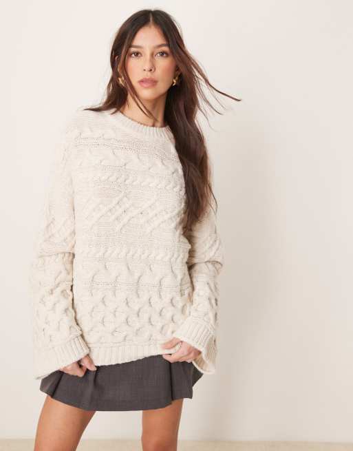 ASOS DESIGN – Gräddvit, kabelstickad tröja i oversize