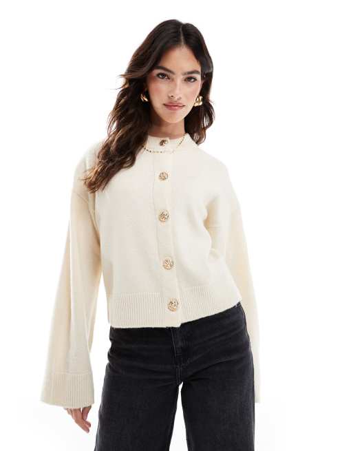 ASOS DESIGN – Gräddvit kofta med rund halsringning och guldknappar