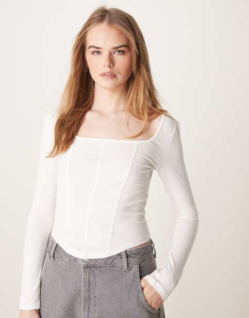 ASOS DESIGN – Gräddvit korsett med fyrkantig halsringning