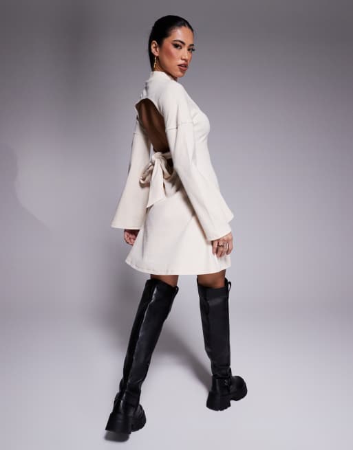 ASOS DESIGN – Gräddvit miniklänning med öppen rygg och knytning