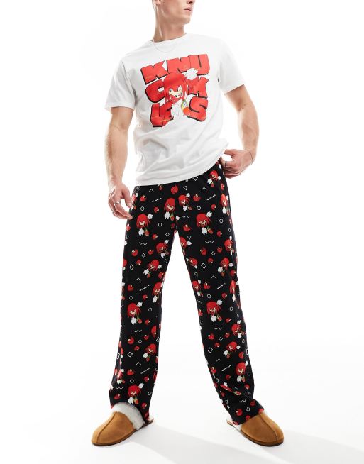 ASOS DESIGN – Gräddvit och svart pyjamas med Knuckles-tryck