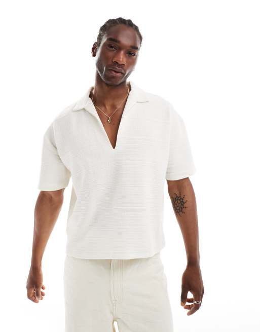 ASOS DESIGN – Gräddvit pikétröja i oversize med platt krage