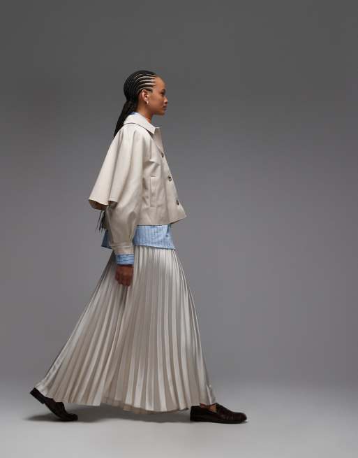 ASOS DESIGN – Gräddvit, plisserad maxikjol i satin