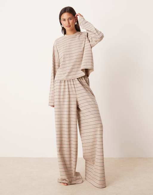 ASOS DESIGN – Gräddvit pyjamas med långärmad topp och byxor