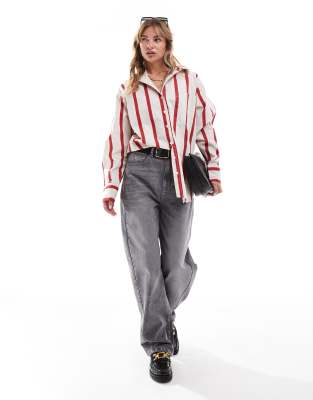 ASOS DESIGN – Gräddvit, rödrandig skjorta i oversize