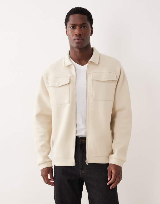 ASOS DESIGN – Gräddvit skjortjacka i scubaliknande material med dragkedja