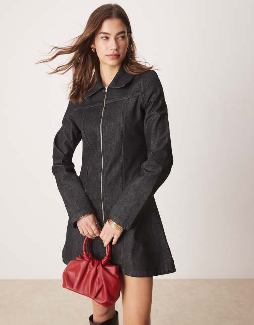 ASOS DESIGN – Gräddvit skjortklänning i denim med dragkedja framtill