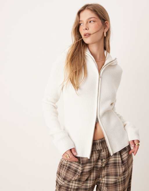 ASOS DESIGN – Gräddvit, stickad kofta med dragkedja och krage