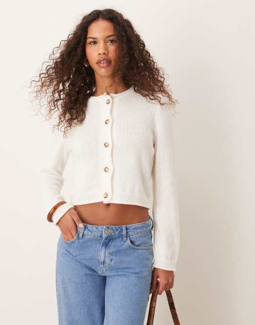 ASOS DESIGN – Gräddvit, stickad korta med rullfåll och boxig passform