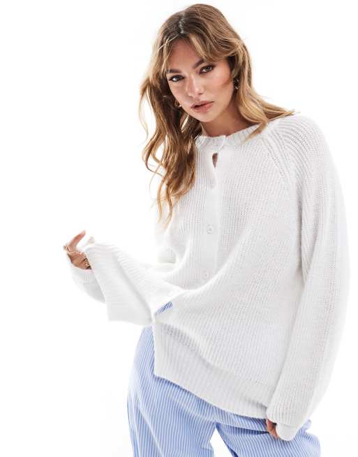 ASOS DESIGN – Gräddvit, stickad och fluffig kofta med raglanärmar