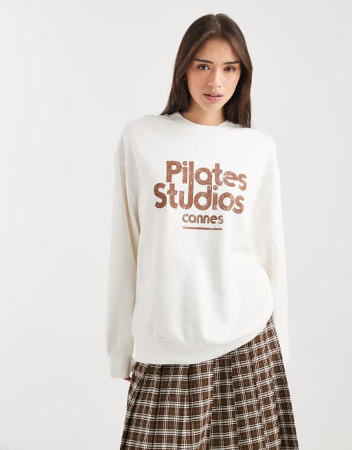 ASOS DESIGN – Gräddvit sweatshirt i oversized fit med Pilates Studio-tryck