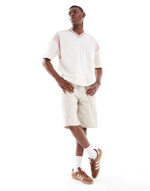 ASOS DESIGN – Gräddvit t-shirt i oversize med boxig passform och rosa panel