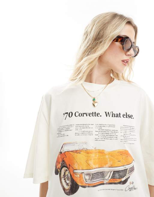 ASOS DESIGN – Gräddvit t-shirt i oversize med licenserat Corvette-tryck