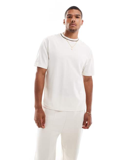 ASOS DESIGN – Gräddvit t-shirt i piké med avslappnad passform