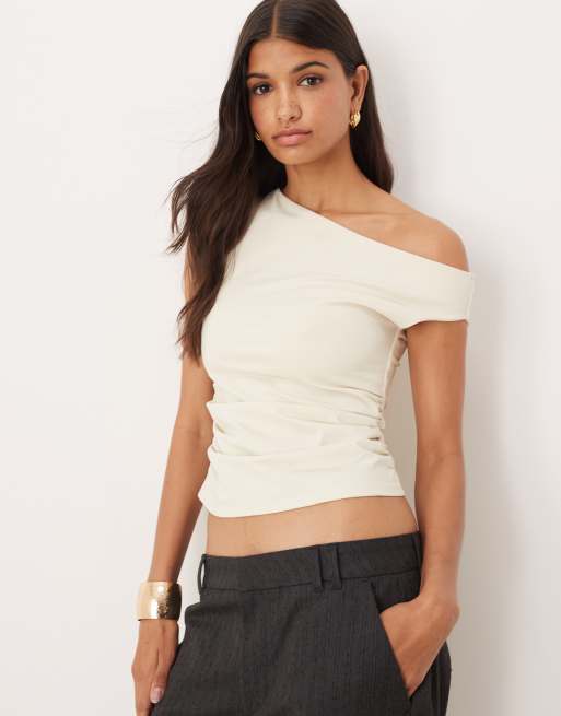 ASOS DESIGN – Gräddvit topp med bara axlar och rysch