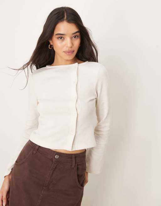 ASOS DESIGN – Gräddvit topp med våffeltextur, knappar och utsvängda ärmar