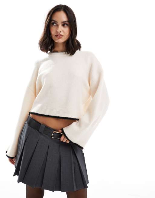 ASOS DESIGN – Gräddvit tröja med rund halsringning, kantrand och boxig passform