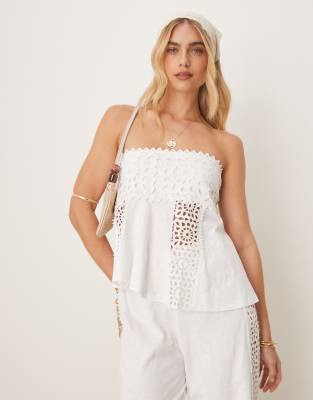 ASOS DESIGN – Gräddvit, virkad bandeautopp