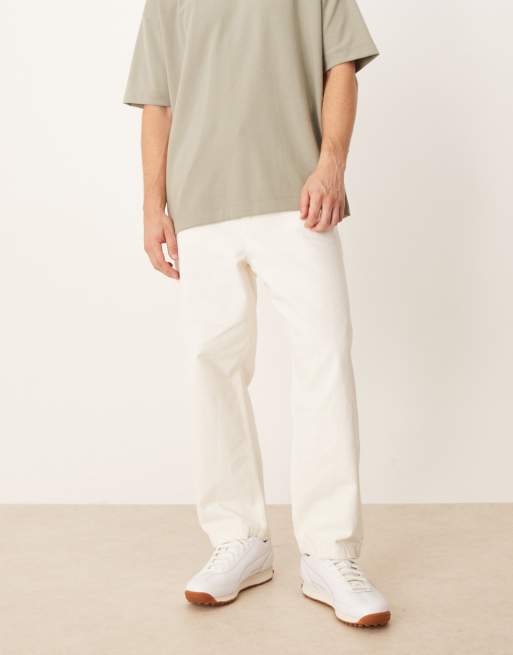 ASOS DESIGN – Gräddvita, raka jeans med ledig passform