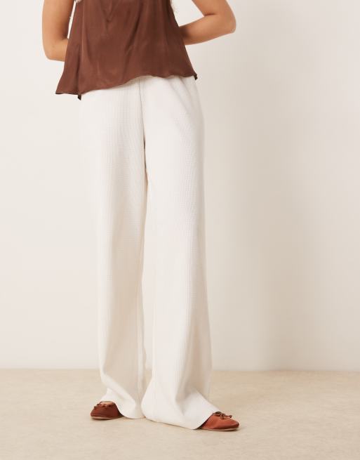 ASOS DESIGN – Gräddvita vida byxor med våfflad struktur