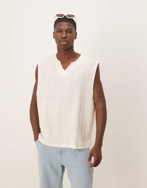 ASOS DESIGN – Gräddvitt, kraftigt, texturerat linne i oversize med boxig passform och sprund