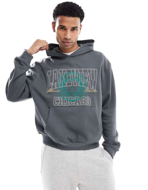 ASOS DESIGN – Gråmelerad, boxig huvtröja i oversize med broderier