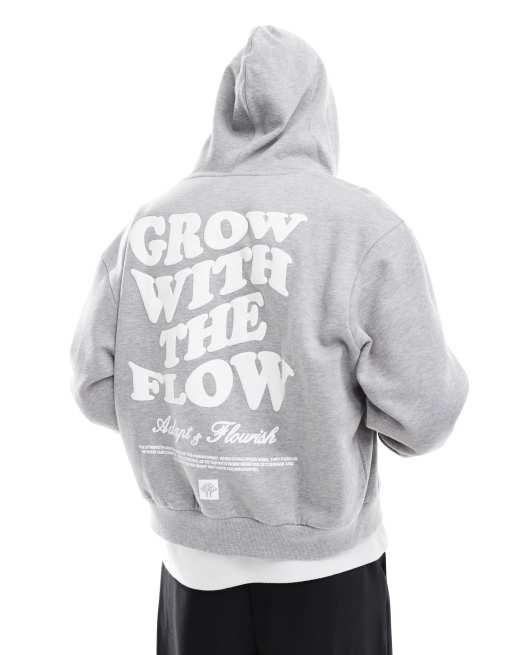 ASOS DESIGN – Gråmelerad huvtröja i oversize med dragkedja och Grow with the flow-tryck