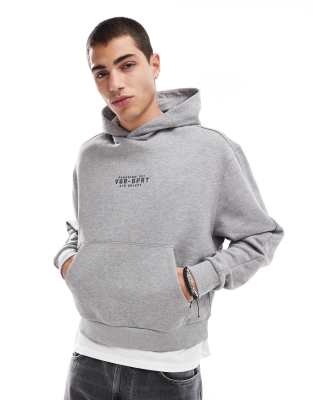 ASOS DESIGN – Gråmelerad, kraftig huvtröja med sportigt tryck framtill