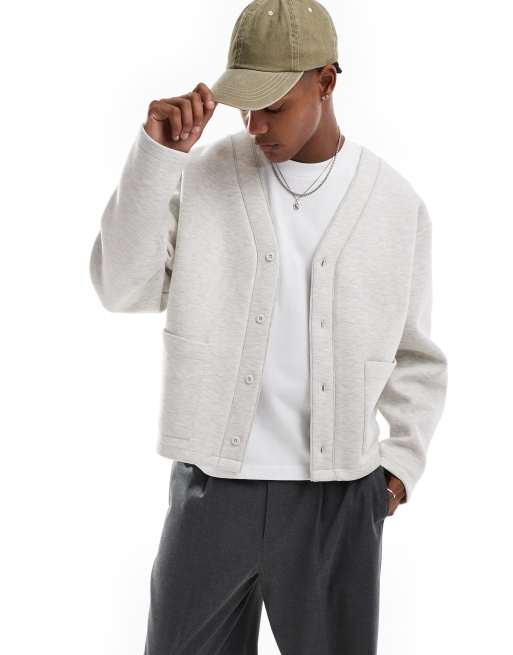 ASOS DESIGN – Gråmelerad, kraftig kofta i oversize av scubaliknande tyg