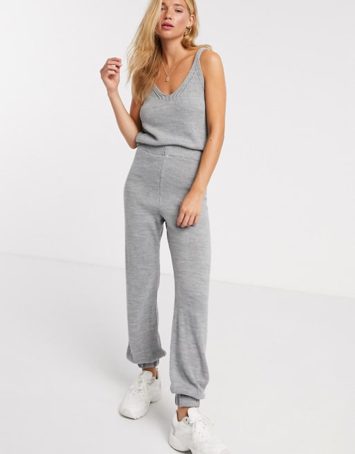 ASOS DESIGN – Gråmelerad set med stickad topp och joggers