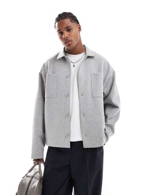 ASOS DESIGN – Gråmelerad skjortjacka i oversize och scubamaterial
