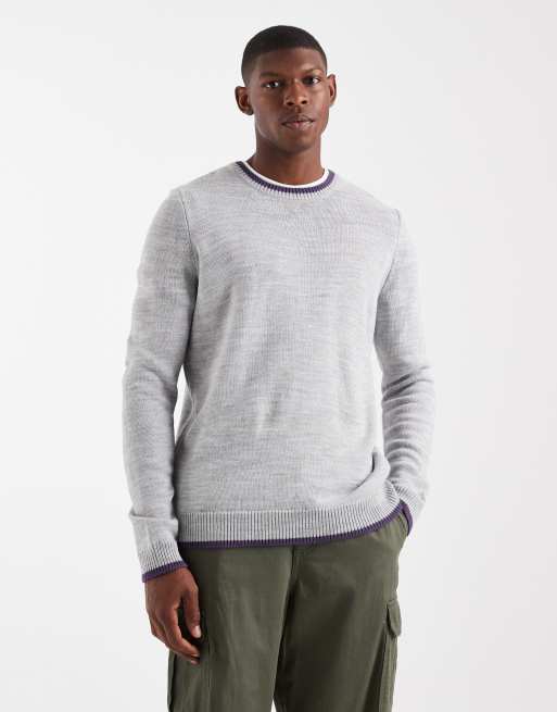 ASOS DESIGN – Gråmelerad, stickad tröja med rund halsringning