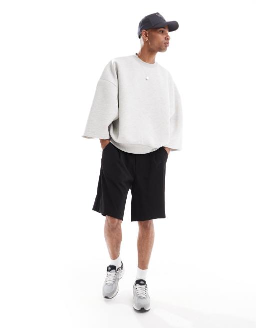 ASOS DESIGN – Gråmelerad sweatshirt av scubatyg i extrem oversize med avkortade ärmar