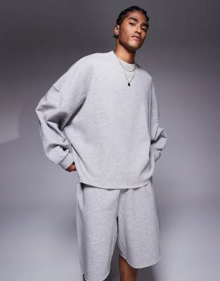 ASOS DESIGN – Gråmelerad sweatshirt i extra oversize med råskurna kanter, del av set