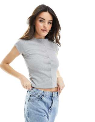 ASOS DESIGN – Gråmelerad t-shirt med tryckknappar