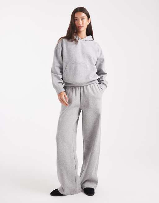 ASOS DESIGN – Gråmelerade, borstade mjukisbyxor med vida ben