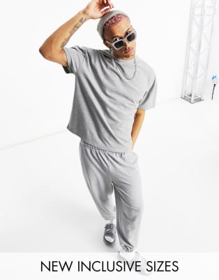 ASOS DESIGN – Gråmelerat set i oversize av pikématerial