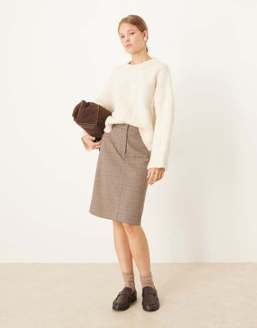 ASOS DESIGN – Grårutig, figursydd midikjol i 90-talslängd