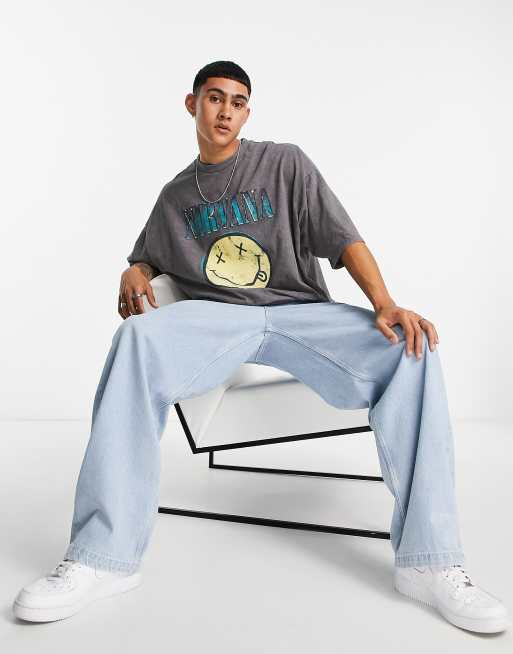 ASOS DESIGN – Gråtvättad t-shirt i oversize med Nirvana-tryck